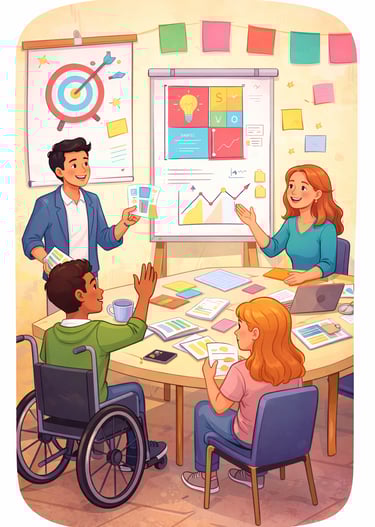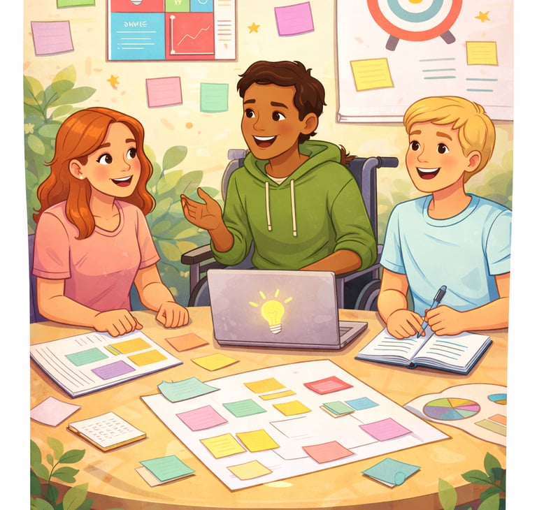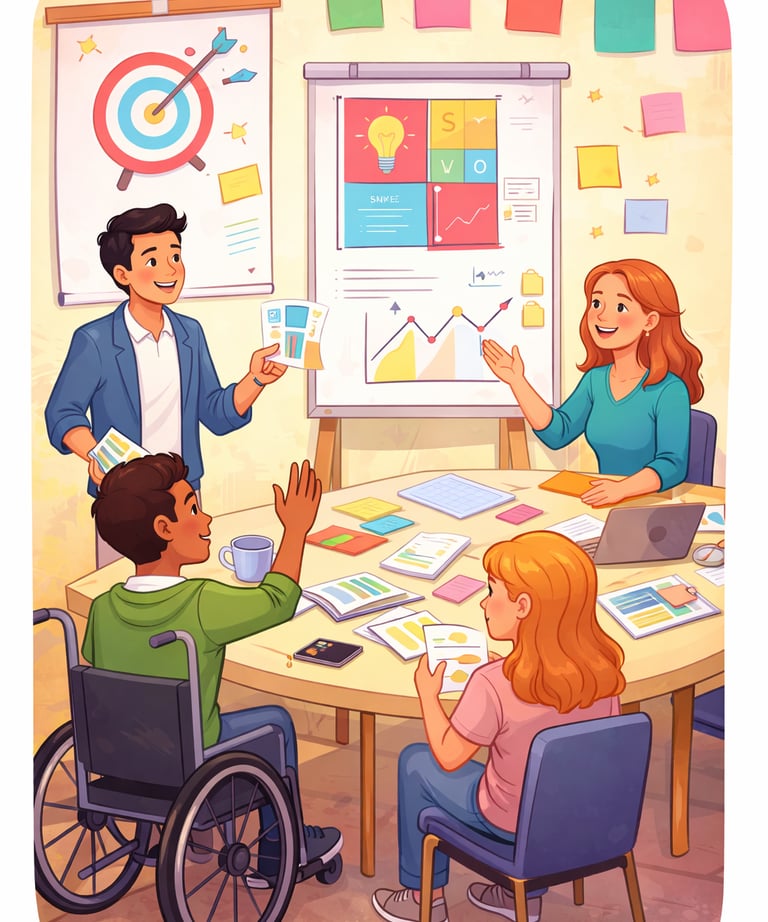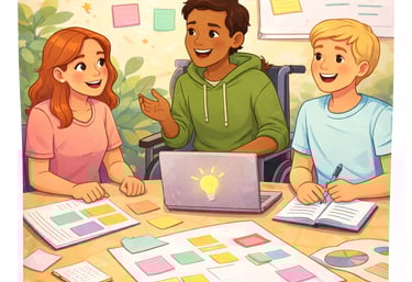 3️⃣ 📖 Pilot Training Programme – A structured programme involving 30 young participants (with at least 40% being people with disabilities), consisting of 12 sessions and personalised mentoring. Participants will develop key competences such as self-awareness, critical thinking, civic engagement, and action planning.